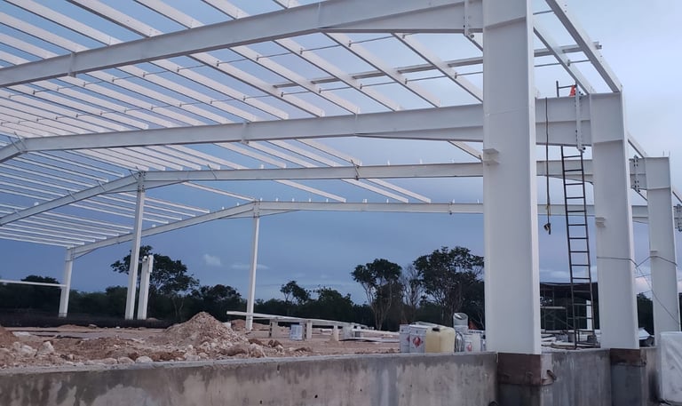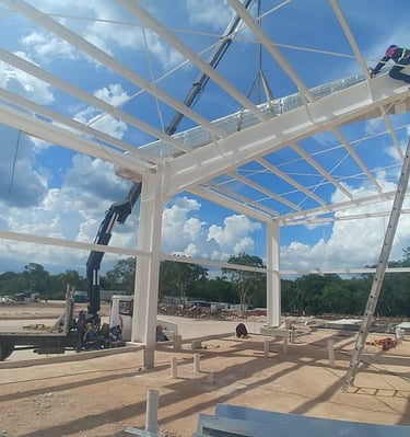 Nuestra planta en Mérida, Yucatán, tiene una capacidad de producción de 450 toneladas al mes. Contamos con personal certificado en soldadura y trabajos en altura, así como con equipos de última generación para el manejo del acero. Esto nos permite ser una empresa con cultura de innovación y cumplir con las normas internacionales. Las estructuras de acero permiten construcciones resistentes y livianas, gracias a la alta resistencia de este material por unidad de masa. Esto nos permite crear grandes espacios sin necesidad de columnas intermedias. Una gran ventaja de construir con metal es su uniformidad y durabilidad. Ofrecemos servicios de diseño y cálculo de estructuras de acero, detallado de estructuras metálicas, elaboración de planos de taller y montaje, así como fabricación y montaje de estructuras de acero, cumpliendo con las normas de IMCA, AISC y AWS.